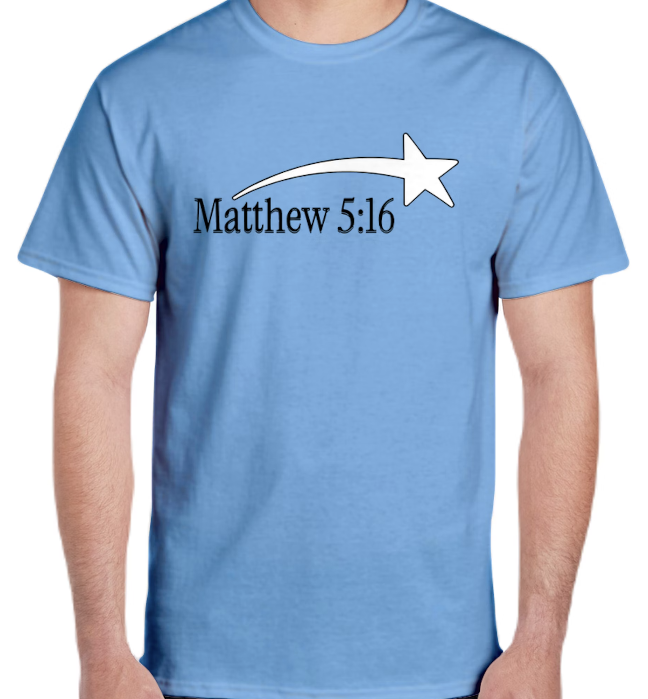 Carolina Blue Short sleeve shirt based on the Scripture Matthew 5:16